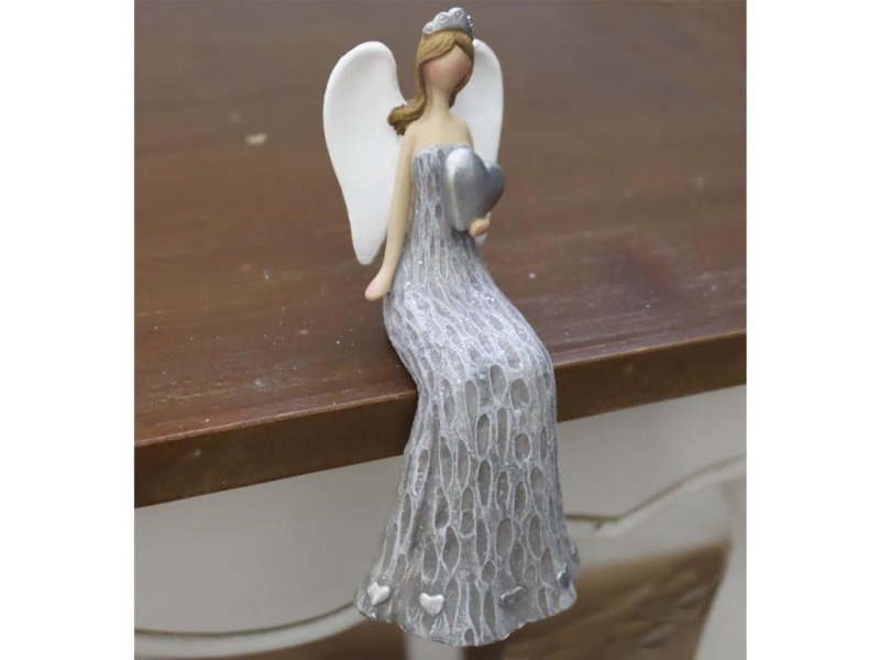 Anděl sedící, šedý, 15,5cm