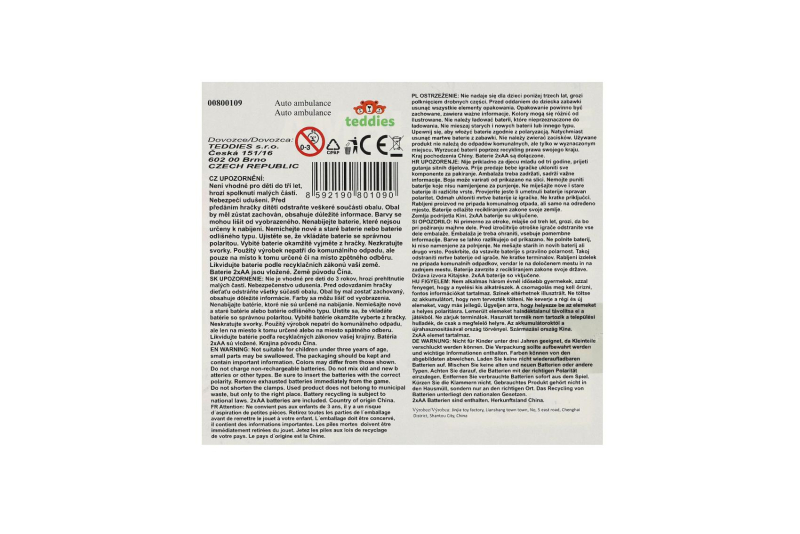 Baterie 2x AA jsou součástí výrobku. Ambulance má