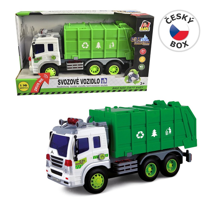 vydává zvuk. Auto odváží roztříděný odpad, který