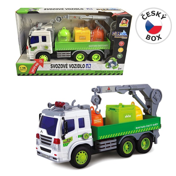 Auto, popelář, tříděný odpad, světlo, zvuk