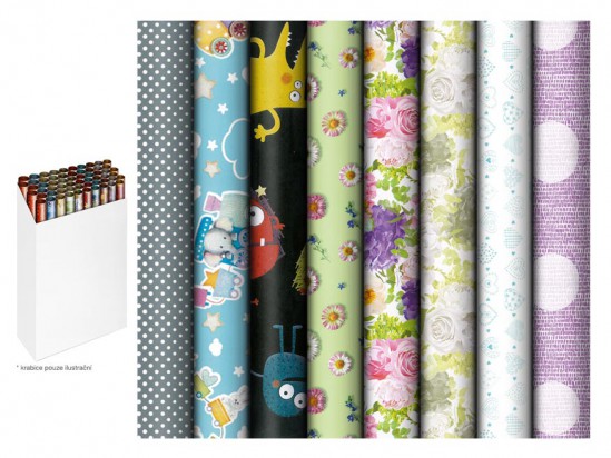 Balicí papír role v mixu 8 motivů a barev, kdy 6