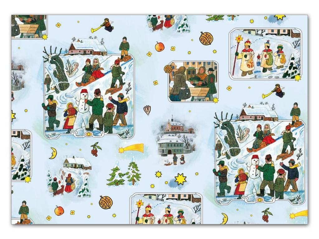 Balící papír Vánoce - Josef Lada. Dva motivy -