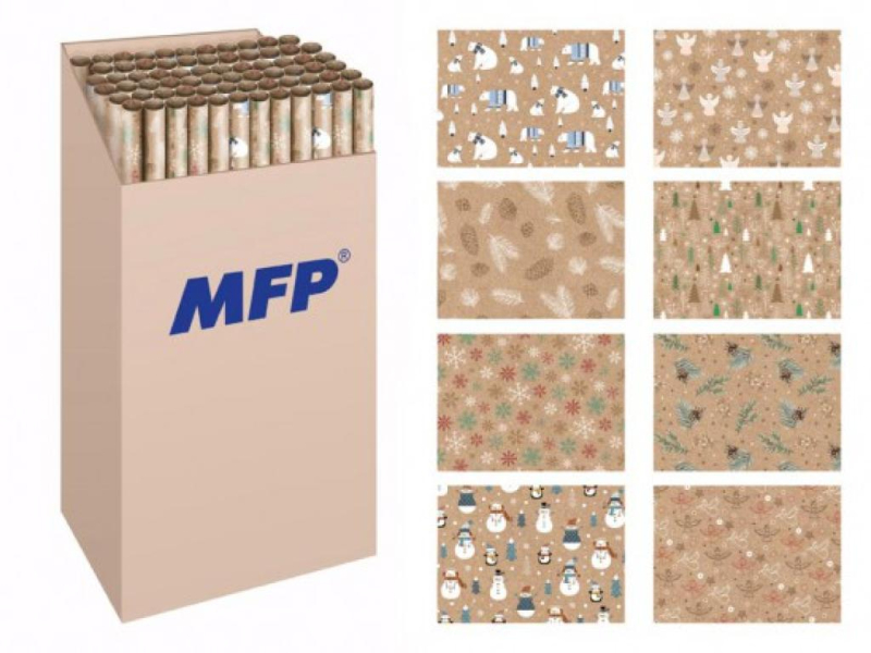 Vánoční balící kraftový papír v mixu 8 motivů. U