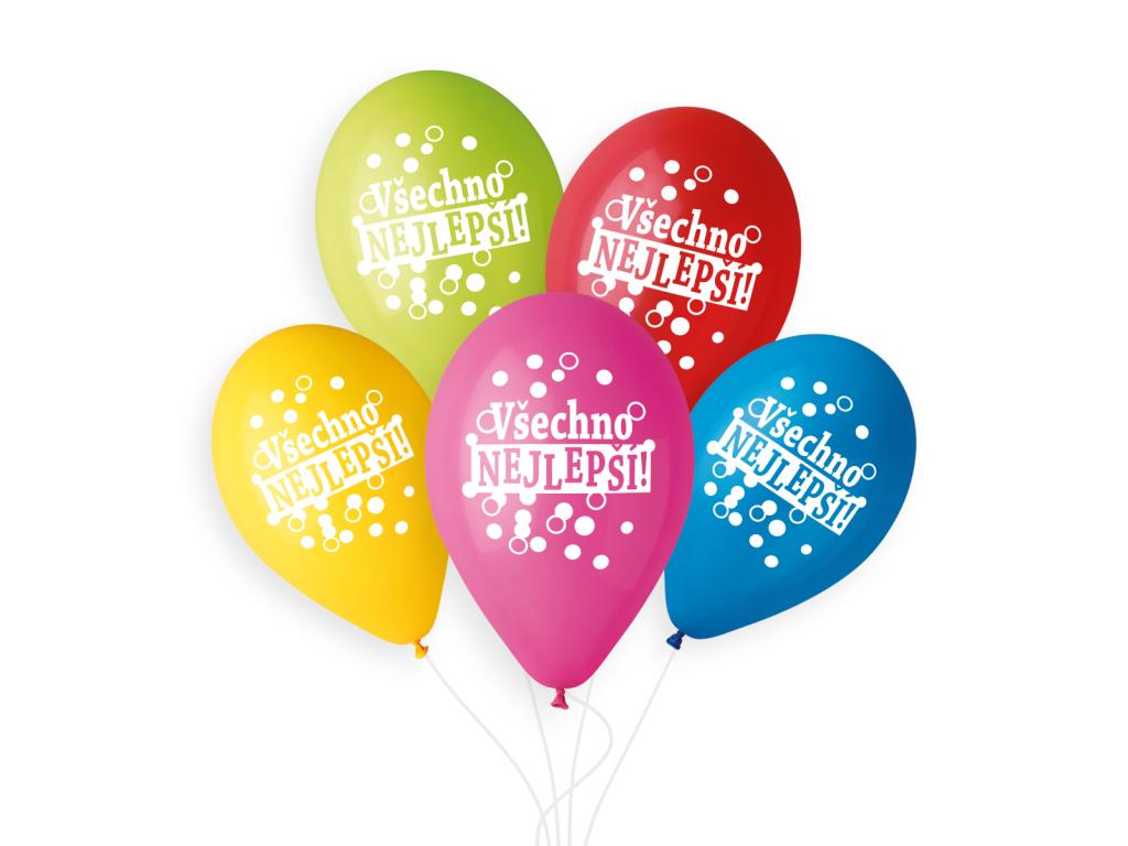 Balónky nafukovací, 5 kusů, Všechno nejlepší