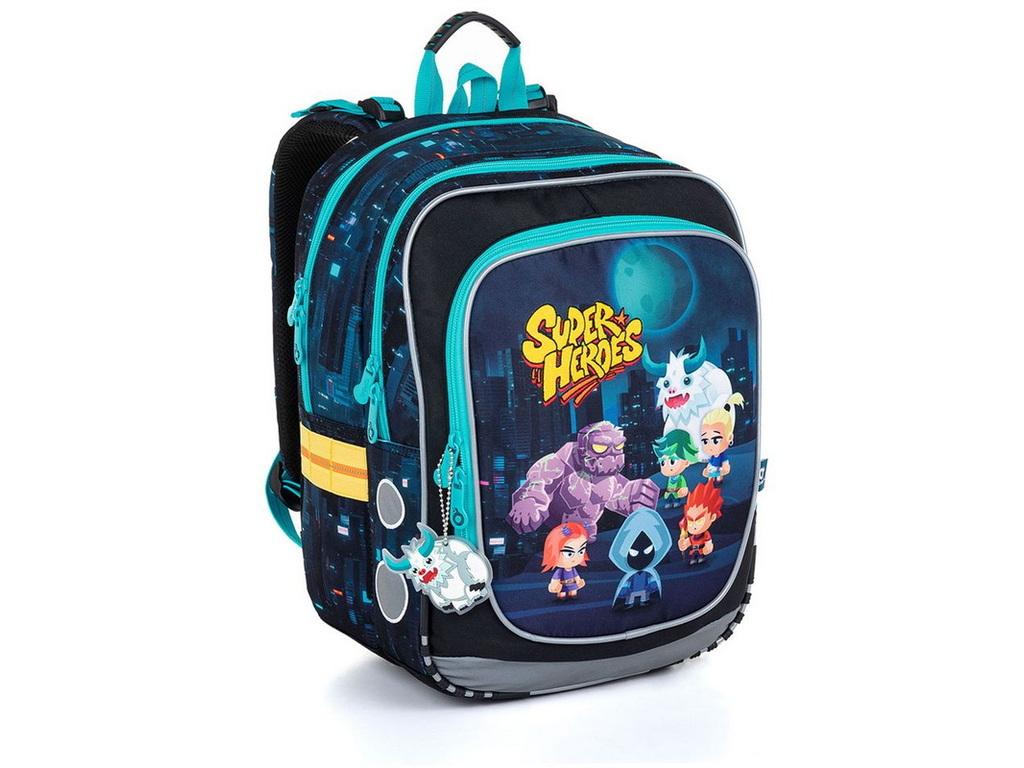 Černý dvoukomorový batoh s motivem superhrdinů a s