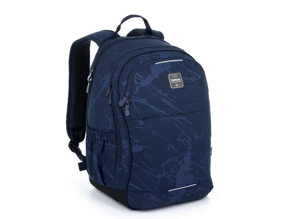 Tmavomodrý studentský batoh s tmavě modrým žíháním