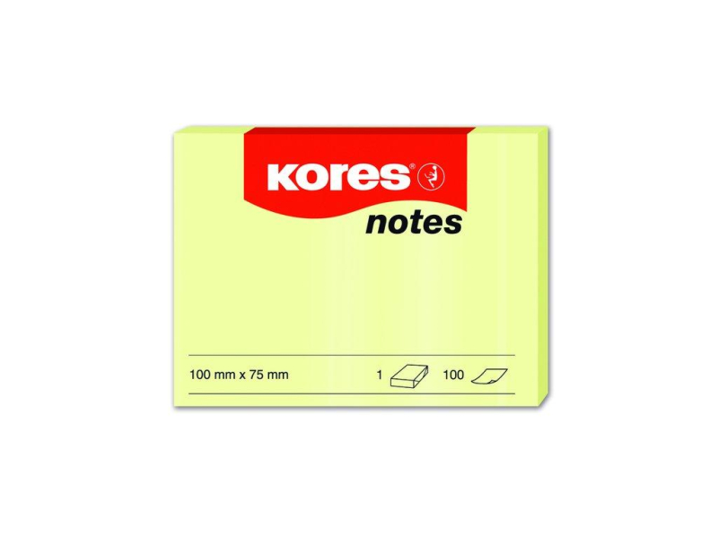 Bloček samolepící, žlutý, 75 x 100 mm, Kores