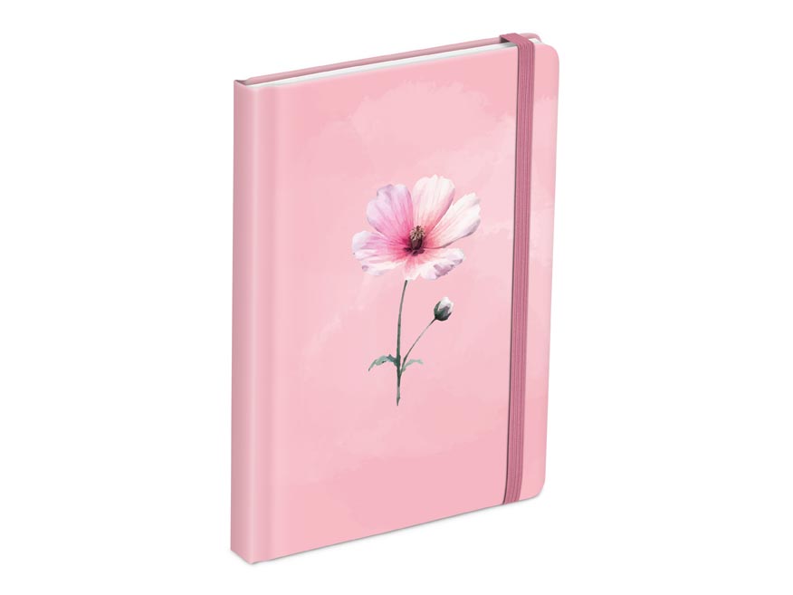 Čistý poznámkový blok v pastelově růžové barvě, s