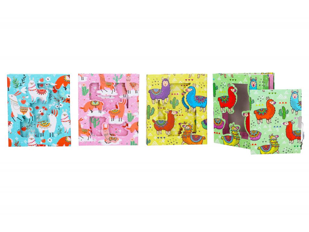 Blok se zámkem v krabičce, motiv lamy. Blok