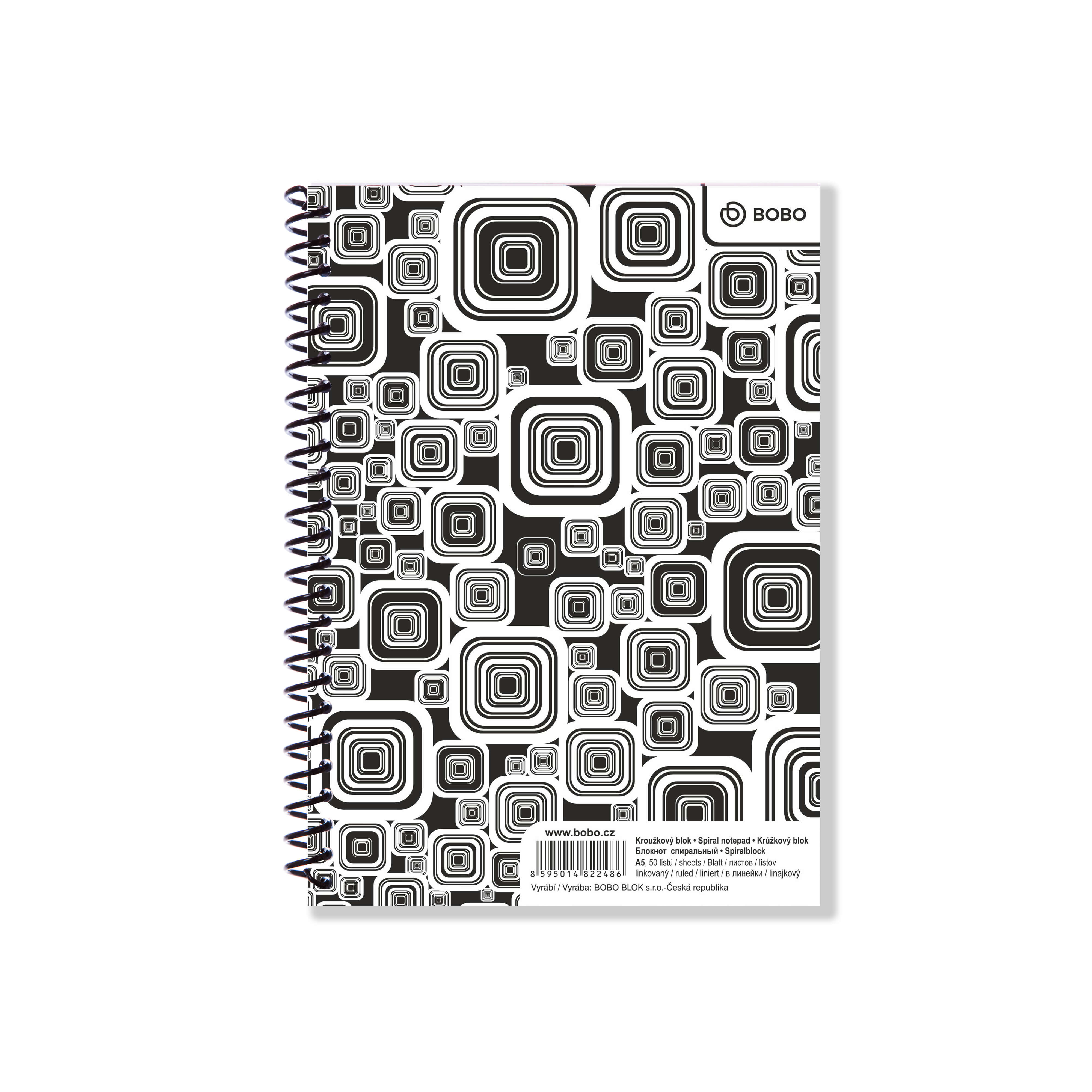 spirálou. Velikost A5, linkovaný papír. Boční