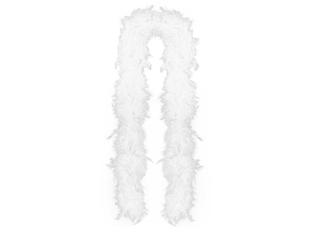Bohaté boa bílé barvy, které je osázeno peřím.