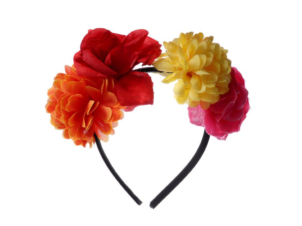 Černá čelenka je zdobená 4 barevnými květy. Cena