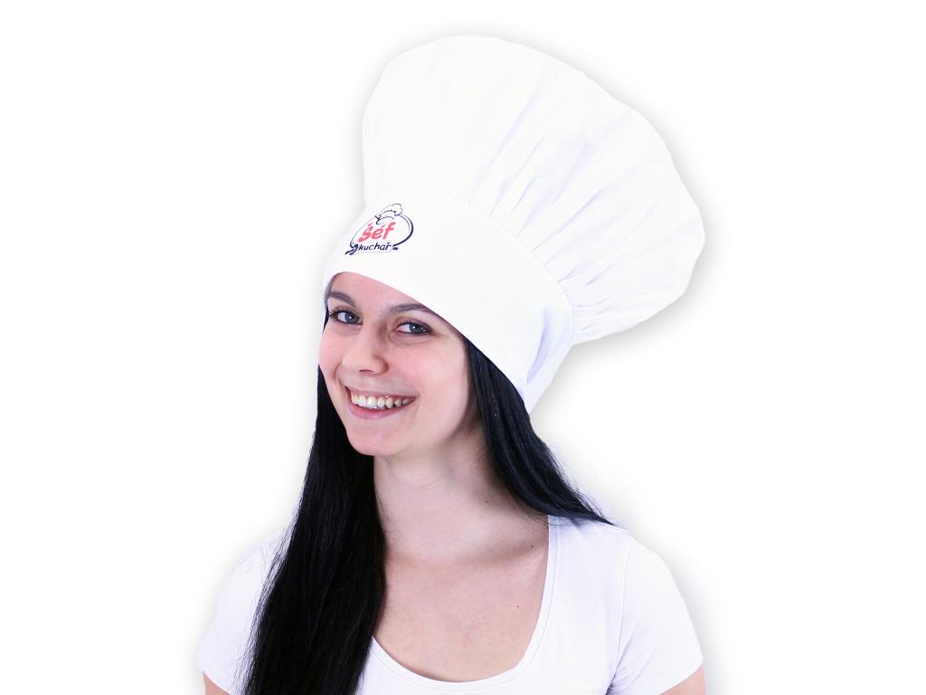 Bílá kuchařská čepice pro dospělé s nápisem *Šéf