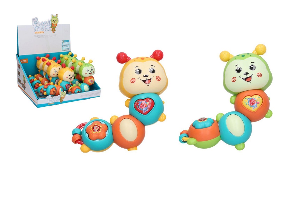 Chrastítko housenka s efekty. Velikost 14 cm.