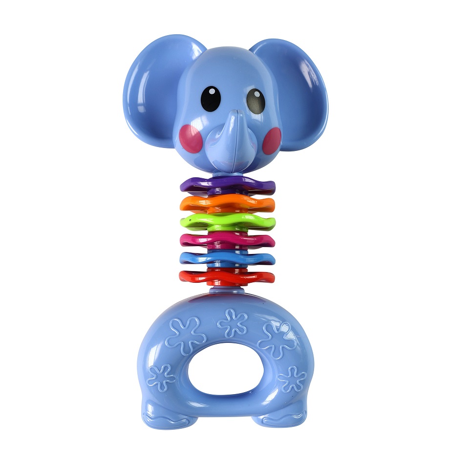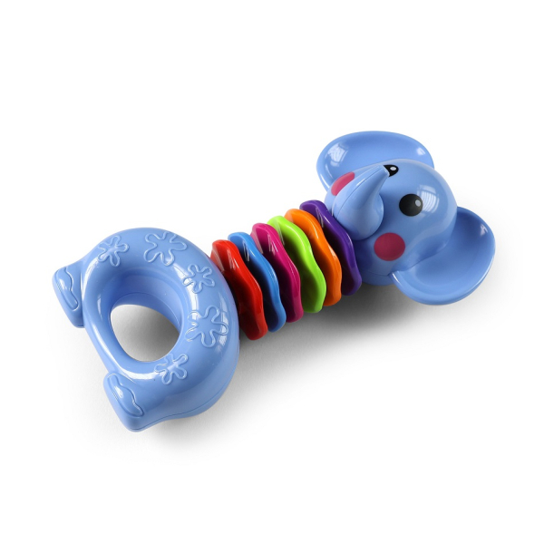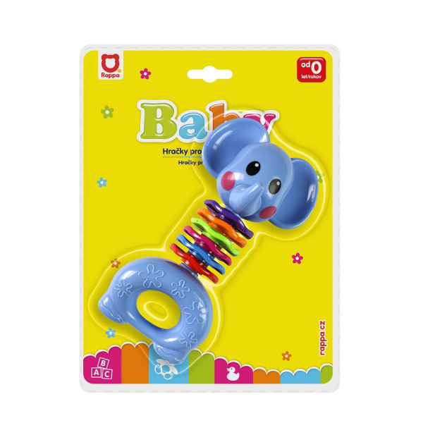 Chrastítko slon v příjemných barvách je určeno pro
