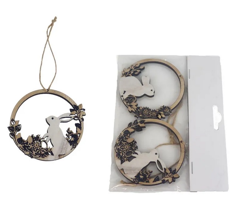 Dekorace se zajíčkem, 2 kusy, k zavěšení
