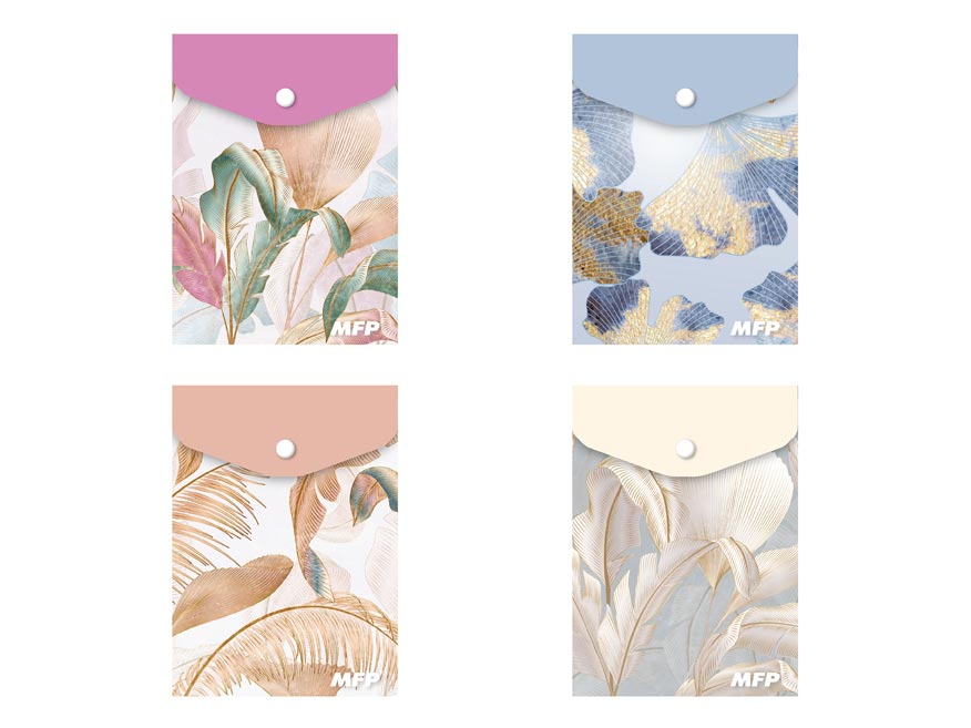 A6, vertikální. Materiál: PP. Motiv: listy v