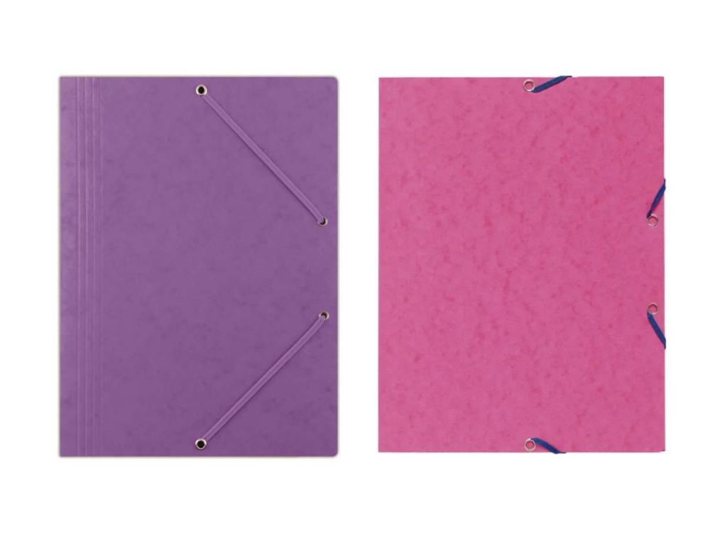Desky papírové A4, 250, bez klop, s gumičkou, prešpán, růžová, fialová