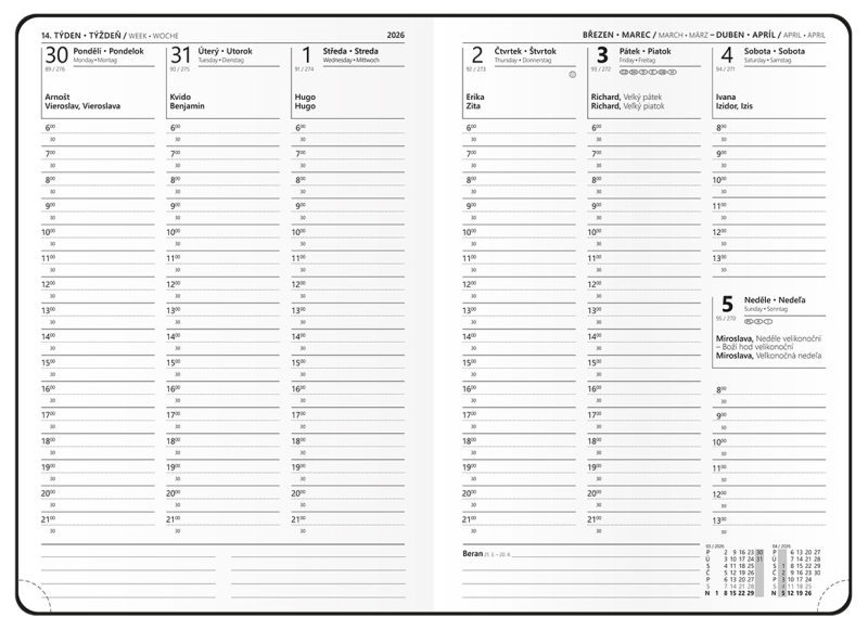 • roční plánovací kalendář CZ-SK 2026