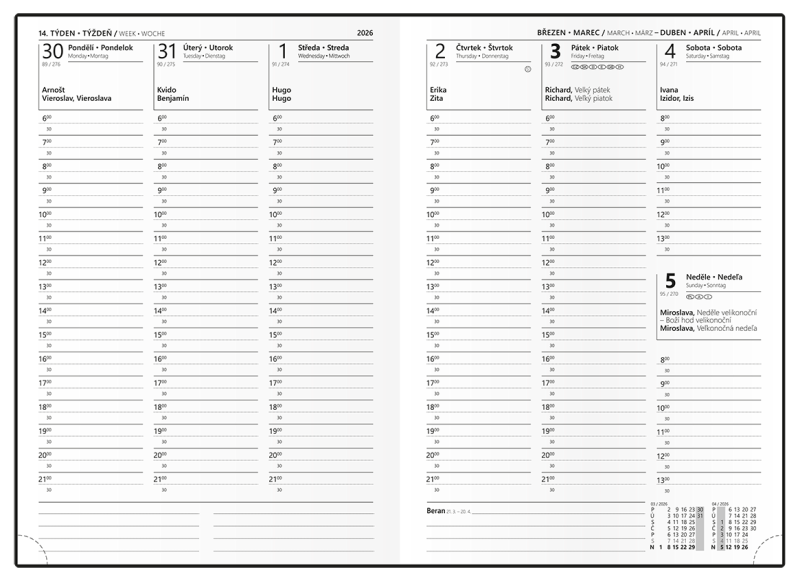 Týdenní diář A5 vyráběný z jemného materiálu -