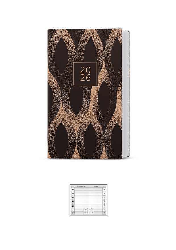 hnědý přírodní papír Kraft, tištěná grafika, šitá