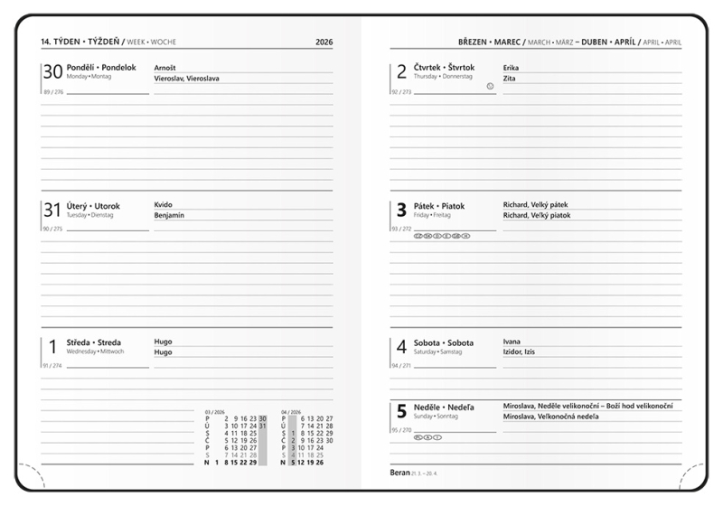• roční plánovací kalendář CZ-SK 2026