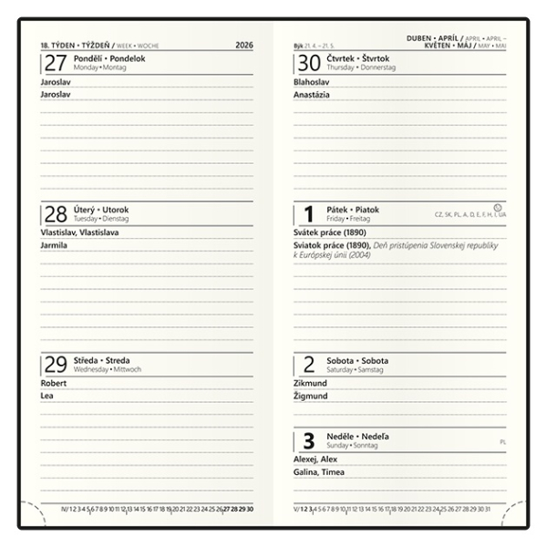 • dny a měsíce ve 4 jazycích CZ, SK, ANG, D
