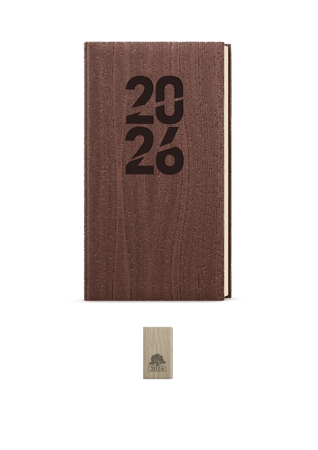 Kapesní týdenní diář s přírodním motivem dřeva s