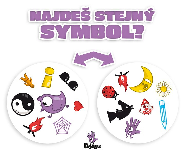 Dobble, to je 55 karet, 8 symbolů na kartě a každé