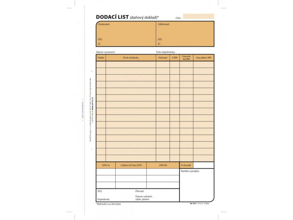Dodací listy A5 s DPH, samopropisovací, Optys