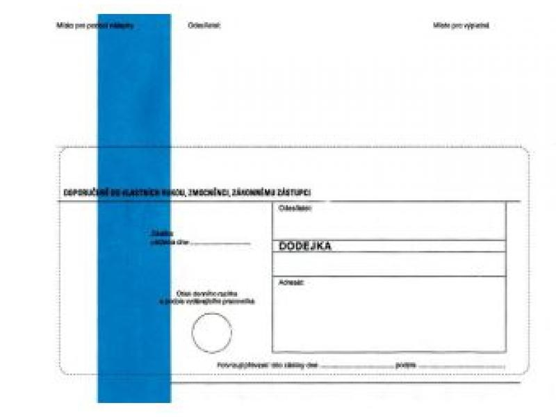 Dodejka B6, modrý pruh - do rukou zmocněnce nebo