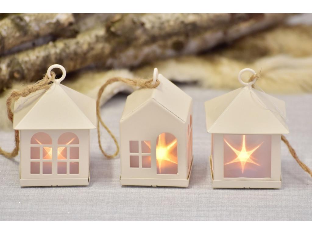 Dekorativní plechový LED domeček-lucernička s
