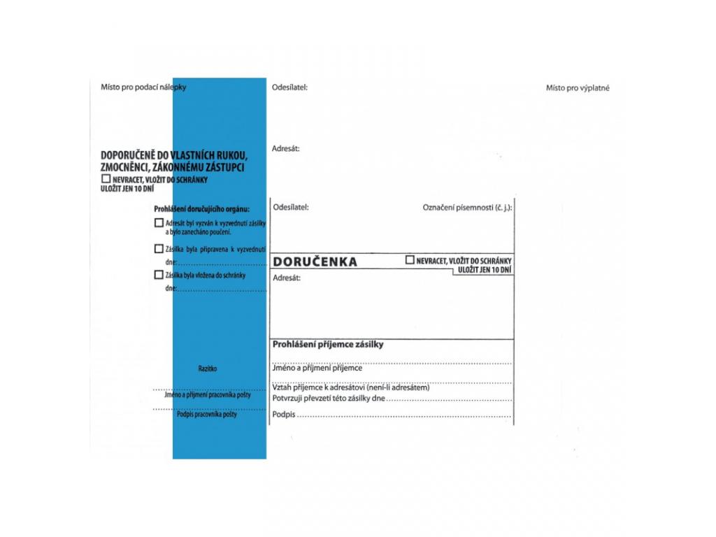 Doručenkové obálky B6 s modrým pruhem - zmocněnci