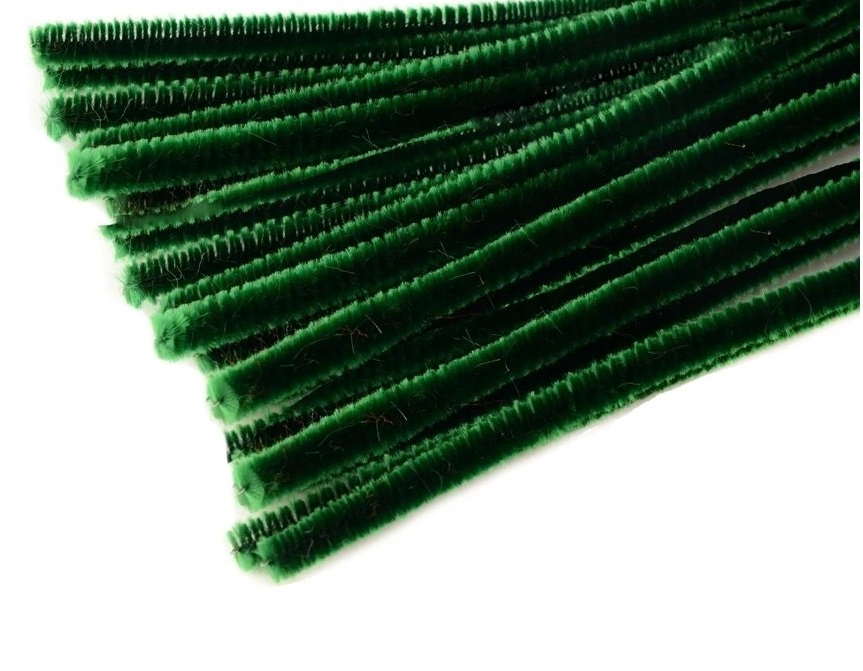 Drátek, plyšový, 50 cm x 9 mm, zelený tmavě