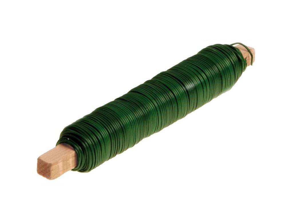 Drátek vázací, zelený. Hmotnost 100 gramů. Cena za