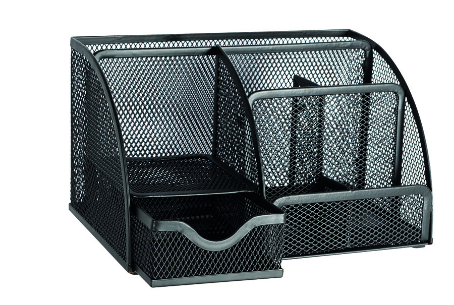 Drátěný organizér na stůl se zásuvkou černý