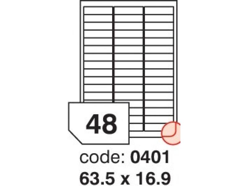 48 etiket o rozměru 63,5 x 16,9 mm. Cena za