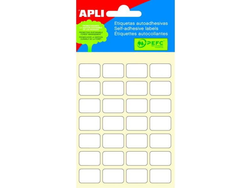 Bílé samolepicí etikety v obdélníkovém tvaru.