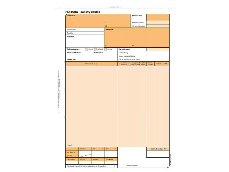 Faktury s DPH formátu A4 samopropisující. Obsahuje