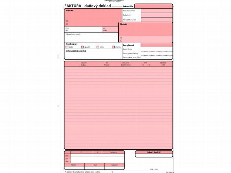 Faktury formátu A4 s DPH samopropisovací. Obsahuje