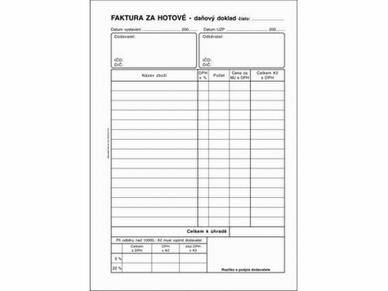 Faktury za hotové formátu A5 s DPH,