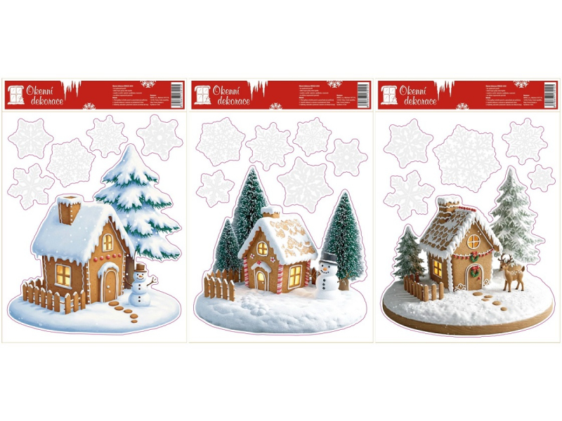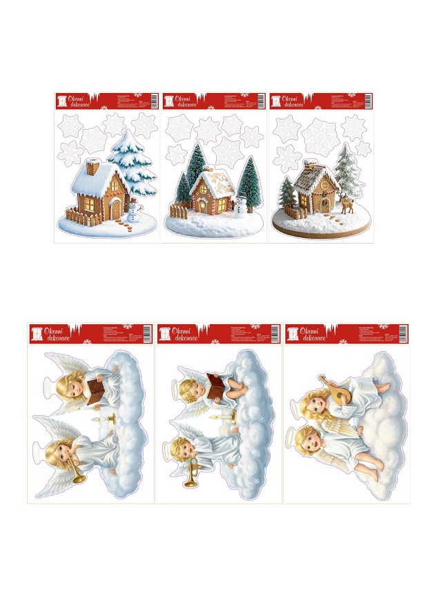 Fólie na okno, 20x30cm, chaloupky, andílci, perníčky