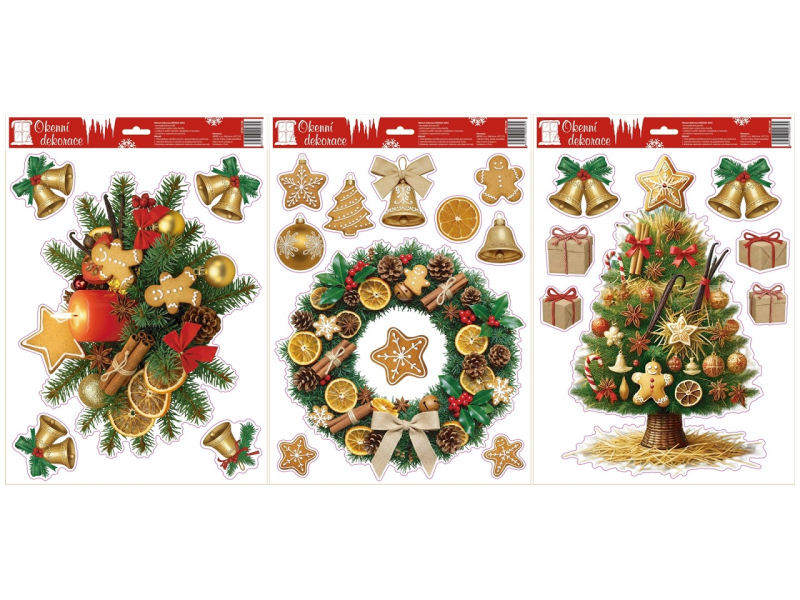 Fólie na okno, 30x42cm, věnec, stromek..