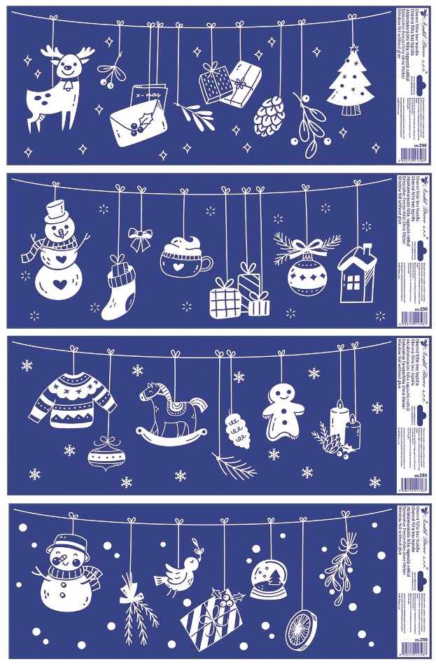 Okenní fólie bílé ozdoby na šňůrce s glitry