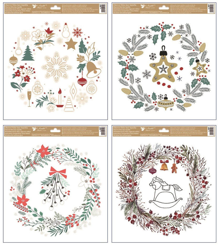 Okenní fólie barevné vánoční věnce s glitry