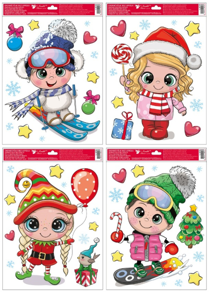 Dekorační okenní fólie – s glitry, Zimní radovánky