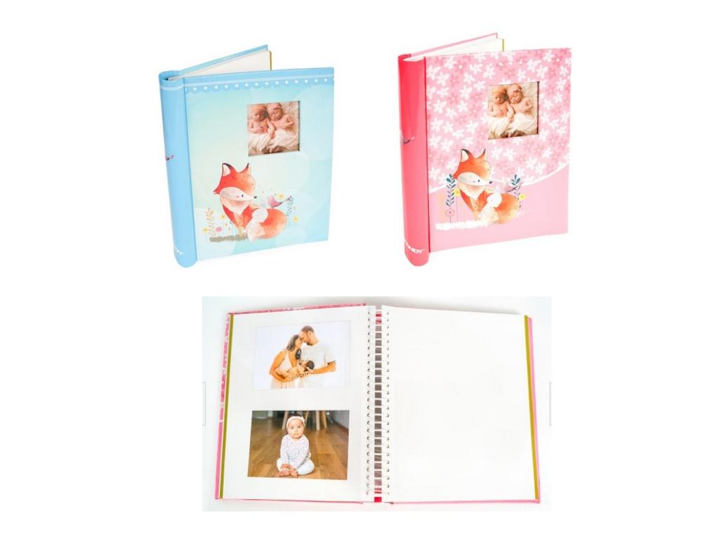 Dětské samolepicí fotoalbum se spirálovou vazbou.