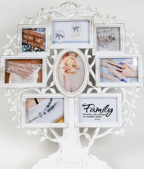 umístěny rámečky na fotografie, a ve středu je
