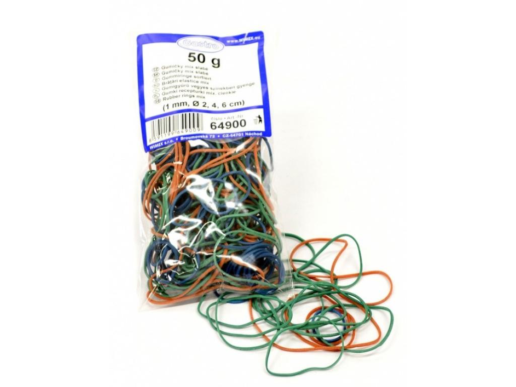 balíček 50 g cca 100 kusů gumiček.