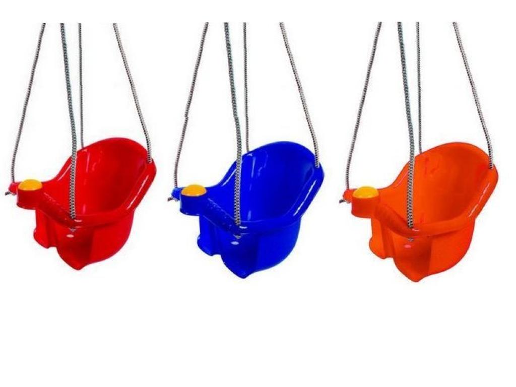 laně a dítě je při houpání jištěno hrazdou, kterou